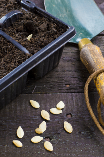 Pumpkins from the grocery store are also often irradiated so that the seeds won’t grow—so seeds from those definitely won’t work!